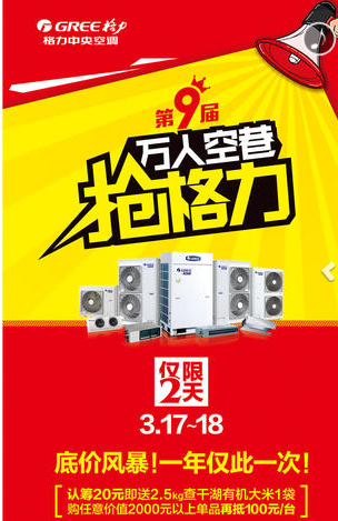 2018年第9届万人空巷抢格力中央空调活动开始啦!!