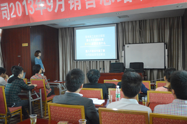 大会第一项就是各个分公司及部门对9月份的销售工作做总结,提出成绩,自省不足。每个分公司和部门的负责人都坦诚的将成绩和不足公布出来,共同找寻前进的方法。