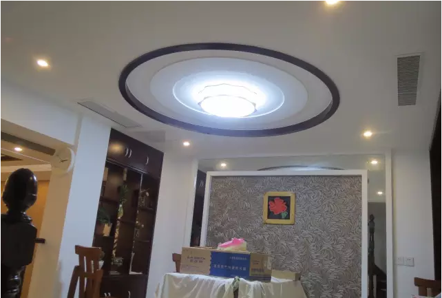 客厅采用下送下回风方式,风管采用防火阻燃制作风道,价格老高的。回风口,业主为了美观需要长条一体大风口,业主可是风口花了不少费用,为了效果,值得。客厅层高4.5米。