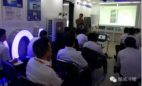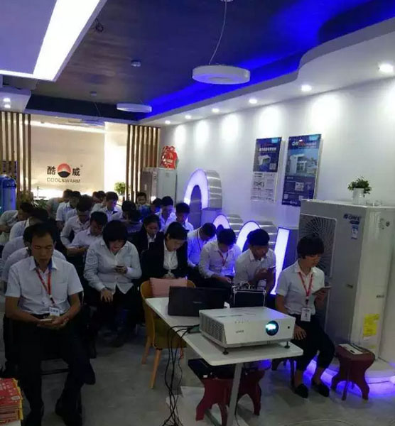 当日酷威冷暖中央空调8-9月销售总结会议在酷威旗舰店展厅里召开。酷威集团总经理,副总经理、各分公司总经理与酷威全体销售精英参加了本次会议。