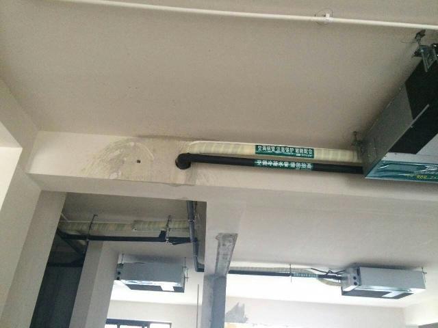 根据房间不同功能、朝向、人流量配置相对应的制冷量,总制冷量为64.3KW,考虑房间的同时使用率,选用格力中央空调室外机GMV-Pd600W/NaB-N1,制冷量为60KW,完全满足需求。再以制冷量为基础选择合适的室内机,然后参照天花吊顶图,以及气流的合理循环,布置室内机位置,最后根据室内机的集中度和室外机安装位置,合理布置铜管走向,以达到合理经济。